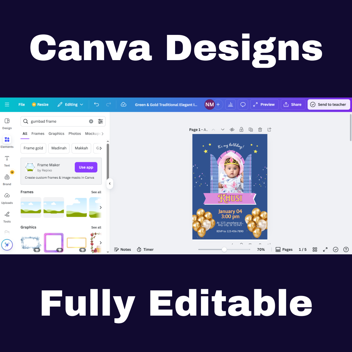 You Can Also Buy : 5 Cute Baby Birthday Invitation Canva Templates