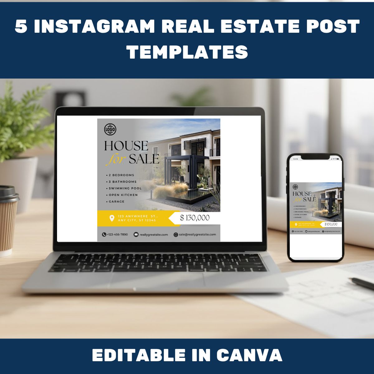 ✅ 5 professionally designed Instagram post templates (1080×1080 px)