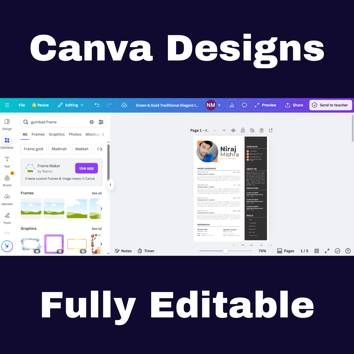 You can easily adjust every element in Canva — no need for Photoshop or Word. Simply replace the placeholder text with your details, update colors to match your personality, and download it. Within minutes, you’ll have a resume that makes a lasting impression and boosts your chances of landing interviews.