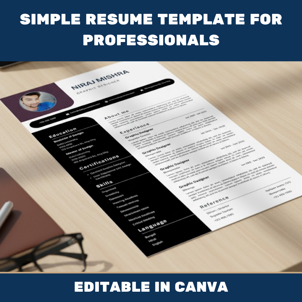 Whether you’re in marketing, design, IT, education, or management, this Simple Resume Template fits every career type.
